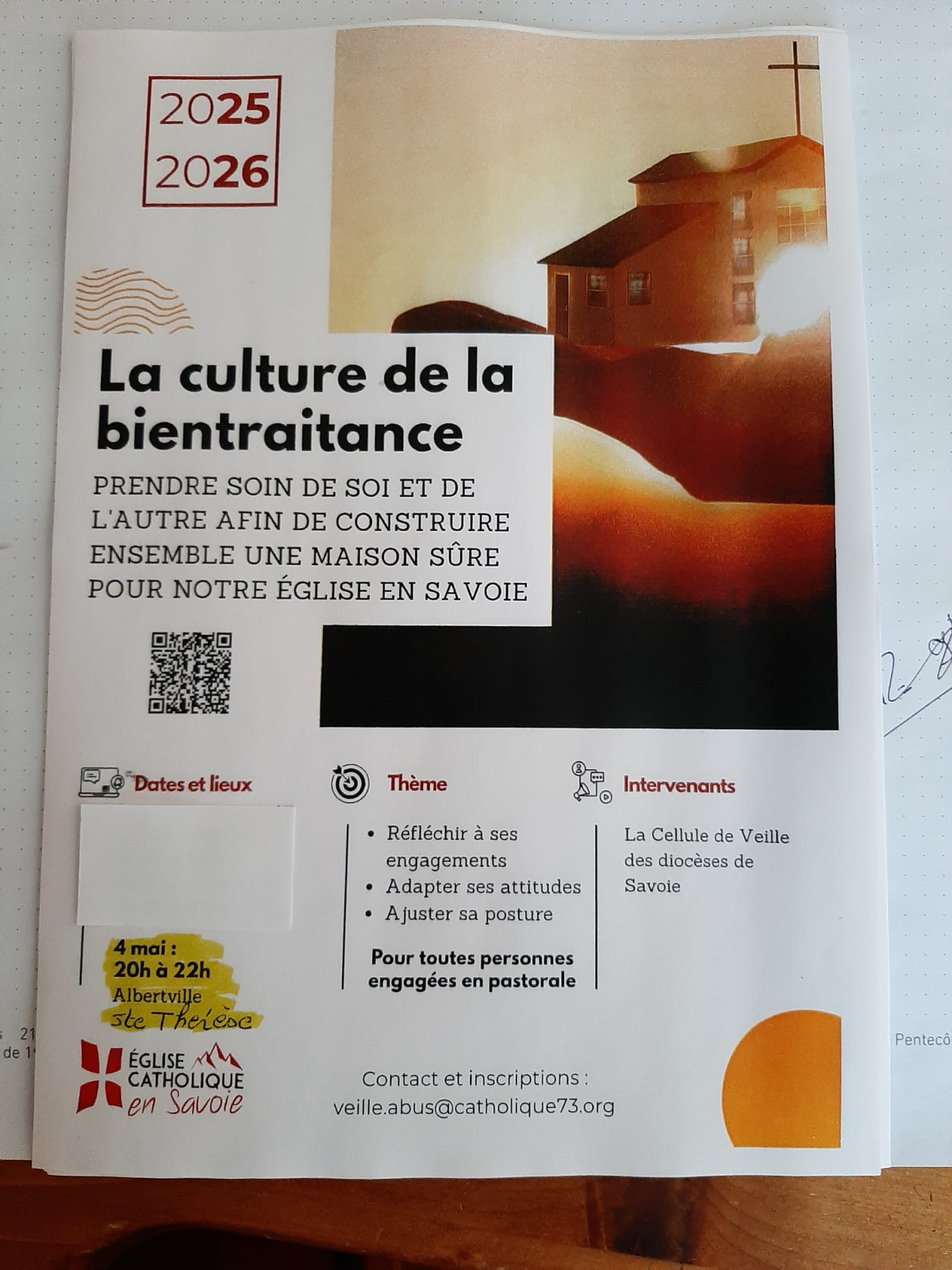 Le 4 mai à Ste Thérèse aura lieu une soirée sur la bientraitance, principalement pour les personnes engagées en pastorale .